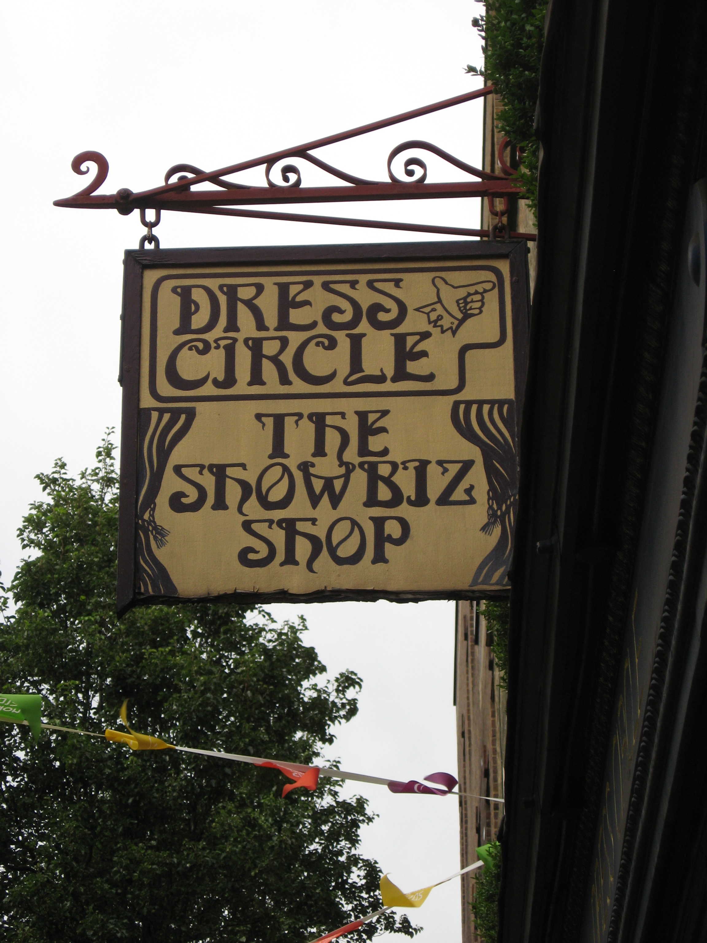 Dress Circle is a famous musical theatre shop located in London’s Covent Garden and, for many of us, the centre of the musical theatre universe. A small shop with a dark blue front and wrought iron gates, at the top of Monmouth Street, it attracts customers from all over the world. Time and time again, I have seen Dutch, German, Japanese, American and Italian customers walk in with a map indicating the shop, and leave with a basketful of CDs, DVDs and memorabilia. Drama school students sit on the floor against the bright red walls, perusing books of music scores, looking for audition pieces. They walk up to the counter. Chris tells them they can get 10% off with a student Equity card. Did their tutor not tell them? Sometimes, they hum a tune and he comes up with the title, composer and lyricist. Tourists ask to buy a wind up model of the monkey playing the cymbals from The Phantom of the Opera. Hoards of giggly teenage girls raid the shop for anything relating to Wicked. They try on Elphaba’s green sunglasses, buy the silver witch hat pendant, and ask if the West End show poster can be rolled up. Thrilled customers put DVDs on the counter, ready to pay. They have been looking for this film for years. “Have you got a multi-region player?” asks Michael. “This is Region 1.” Many musicals on DVD are imported from the US. Dress Circle trained me well – I now buy only multi-region DVD players. I also learnt how to open a new CD by running a biro point along the side, slashing the film wrapping easily.