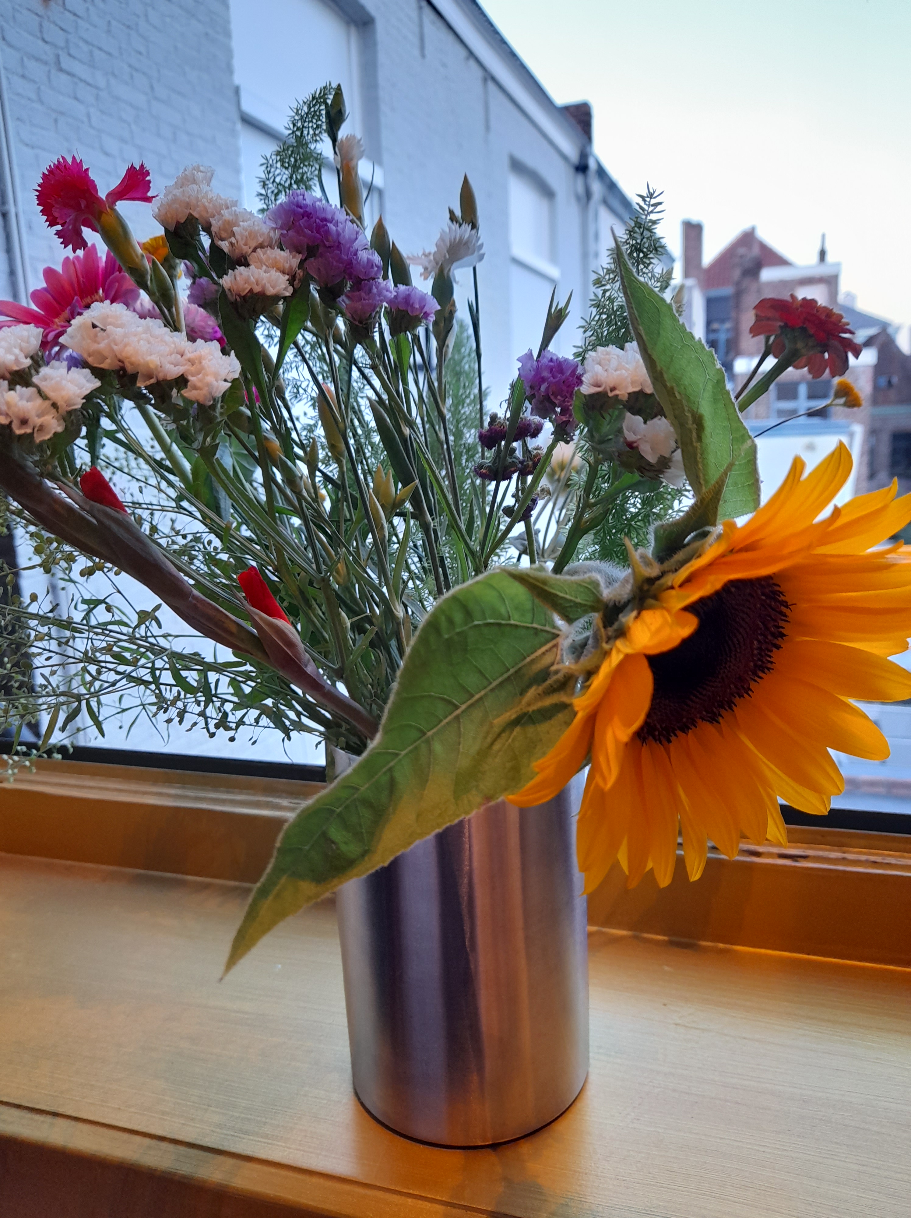 We come into our room to find a large, colourful bunch of flowers in a vase on the windowsill. Reds, purples, white and even a glorious sunflower, bright against the pastel sky. The next morning, I thank the lady of the house. I assume it was she who placed the flowers in our room. It’s the kind of thing a woman thinks of. “It’s market day on Saturday,” she says. “The flower man always brings a couple of bouquets and I thought you’d like one.” She doesn’t add because you’re staying ten days.