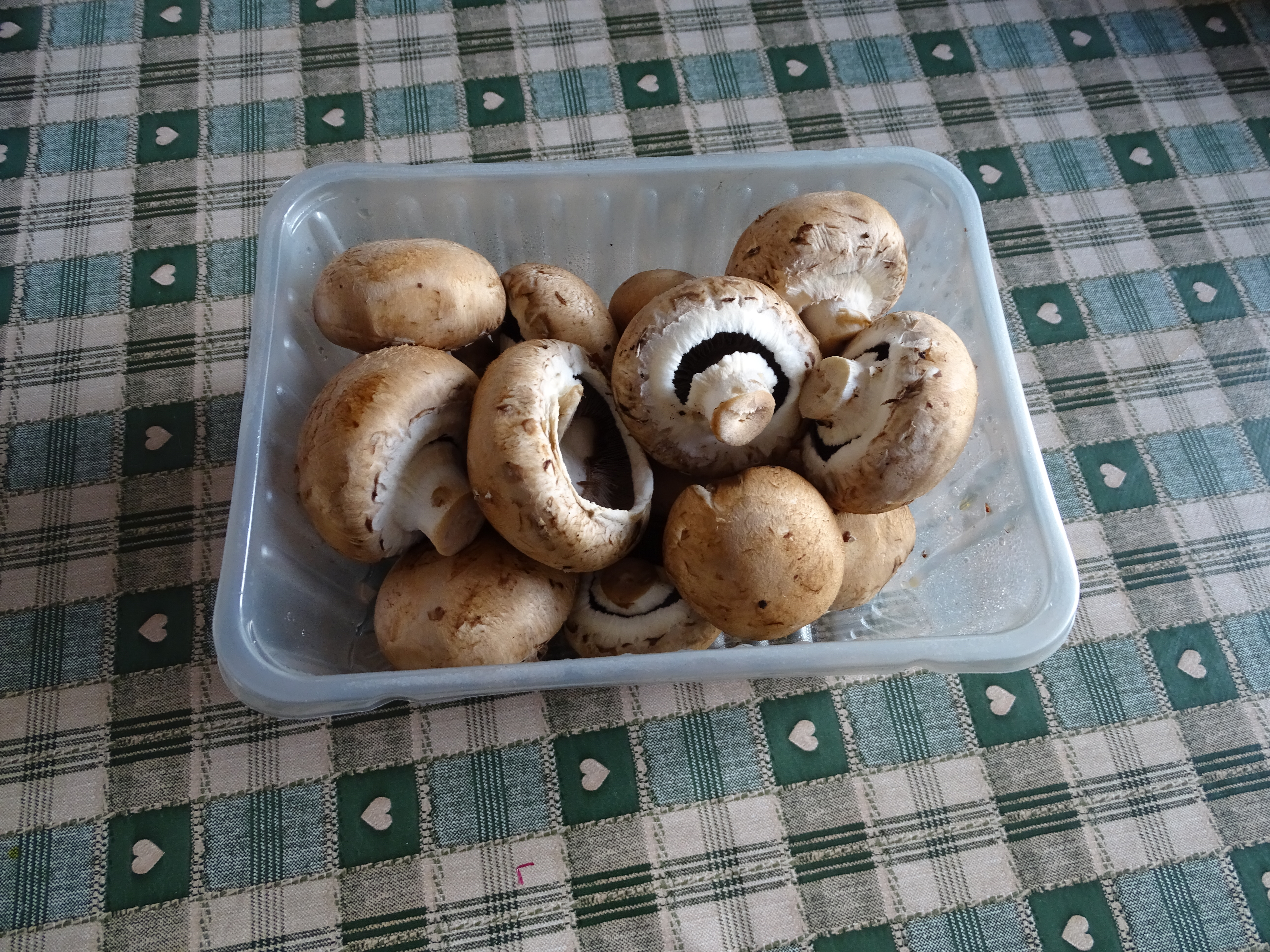 Wash the mushrooms thoroughly, cutting off the very ends of the stalks, slice them, then fry them gently in a little butter, adding salt and pepper to taste.