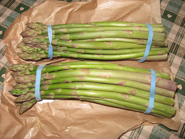 Wash the asparagus and break off the tough end of the stalks, then steam them (boiling takes away their flavour) until just soft enough to remain crisp: you don’t want mushy asparagus.