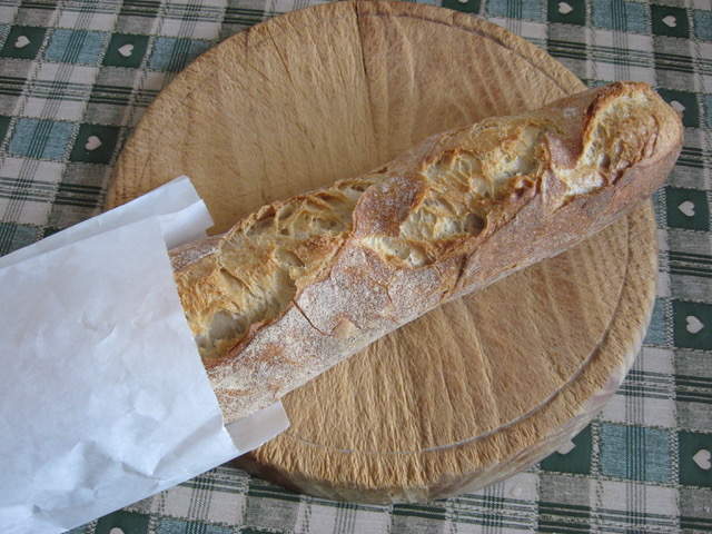 Cut the baguette either in long slices or down the middle and drizzle with a few drops of olive oil.