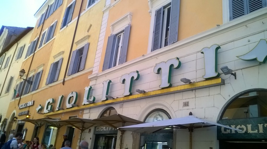 Chocolate and chestnuts are perfect allies. My favourite ice-cream combination is gianduia and marrons glacés, only found, to my knowledge, in my favourite ice-cream parlour, Giolitti’s, in Rome, where it is served with a panache of whipped cream, in a tall glass, which the waiter in a white jacket places on the gleaming marble table.